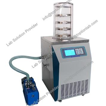 TOPT-12S oppvarming på plass vakuum fryse tørketrommel serieslyophilizerare små vertikale fryse tørketrommel maskinen. Disse typer loddrett vakuum fryser tørking maskin har hylle oppvarming og programmerbare funksjon.